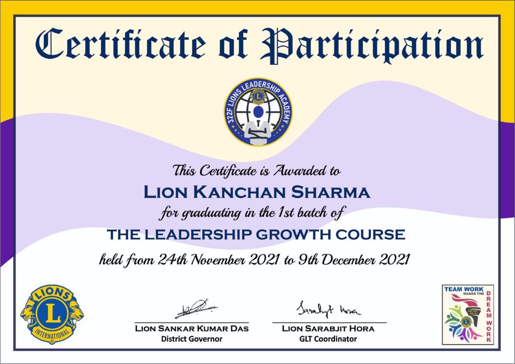 Our Club leaders successfully graduated from Lions Leadership Academy of Lions Clubs International District 322f.
